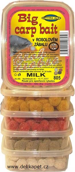 Big carp bait v rosolovém zábalu jsou vyrobeny podle speciální receptury a prokázaly velkou úspěšnost při lovu kaprů. Jejich specielní zábal obsahuje spoustu vysoce výživných látek, které při styku s vodou vytvoří okolo kuličky rosolovitou hmotu, která se pomalu rozpouští a vytváří takzvaný vonný oblak.